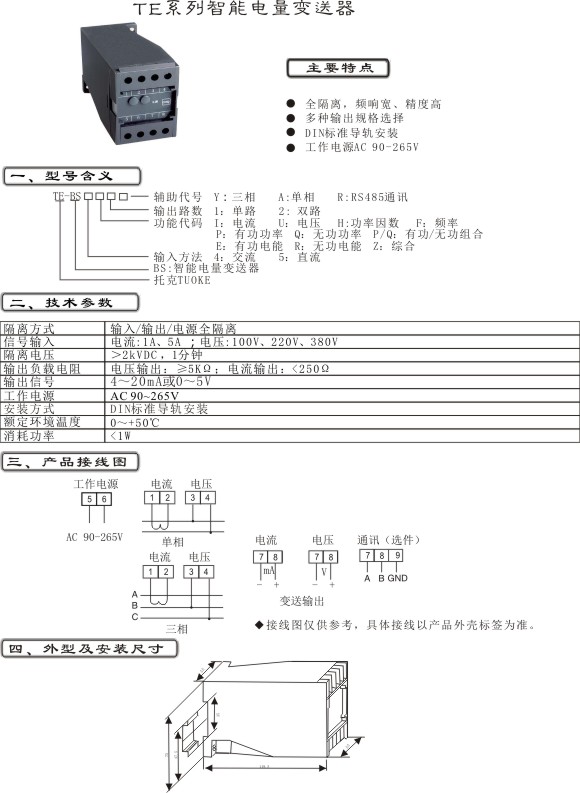 >> TE系列智能电量变送器